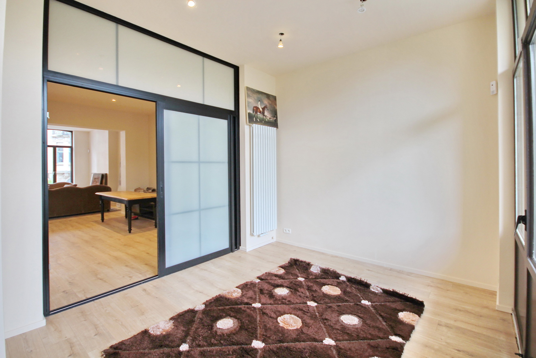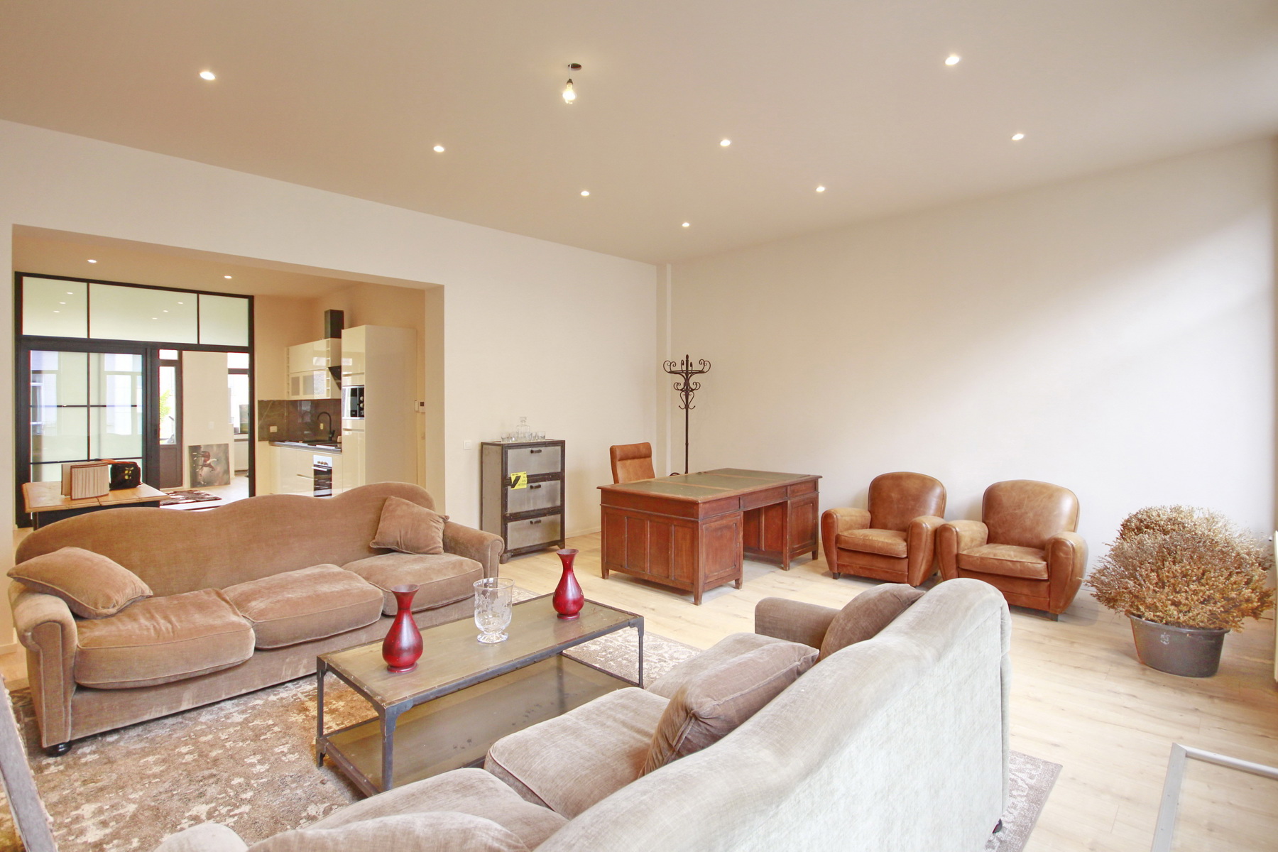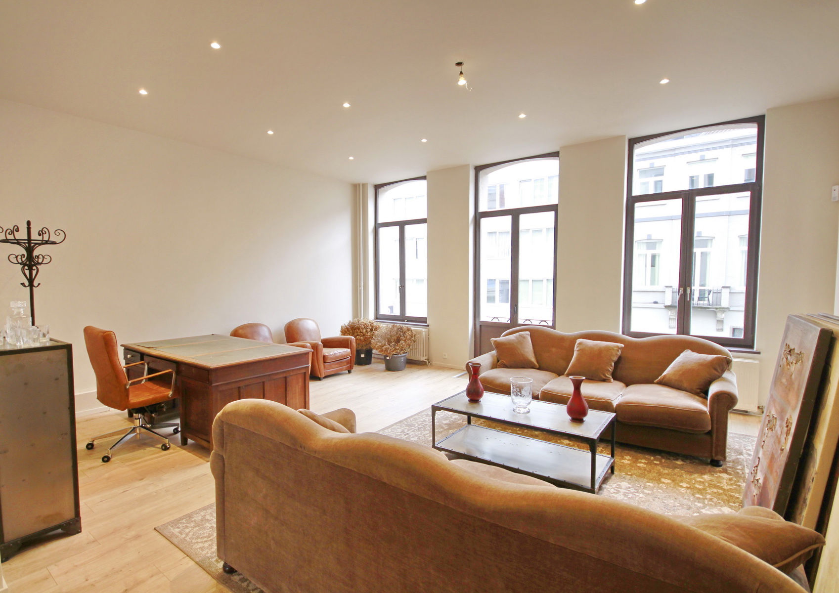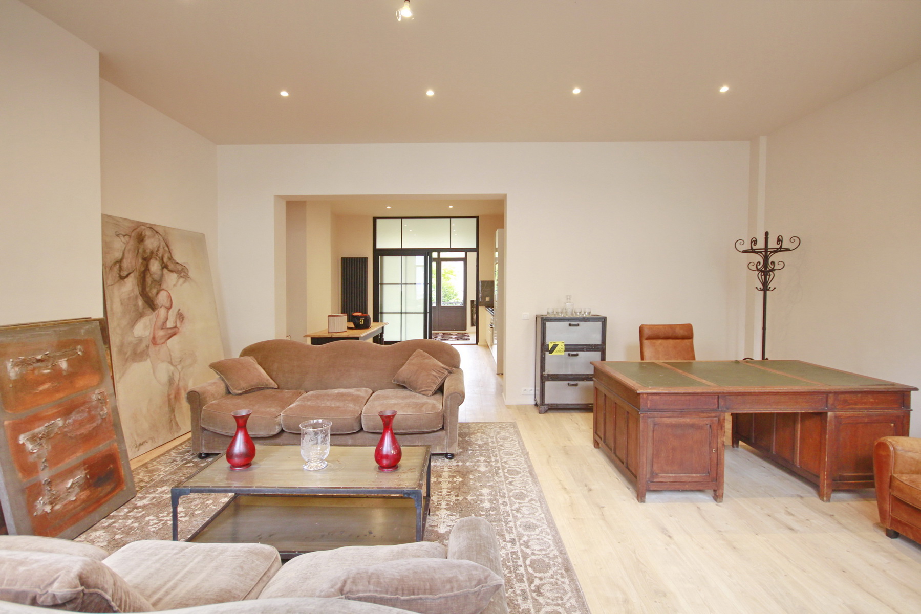 A LOUISE: au 1er étage d'une belle maison des années 30 situé à proximité du parc Buchholtz, belle surface de bureau lumineuse avec hauts plafonds moulurés et parquet. Le bureau comprends 3 grandes pièces en enfilade, cuisine équipée, wc séparé et douche, belle terrasse arrière de 5 m². Charges : 155 €/mois (55€ les communs + 100€ de précompte immobilier). Accès facile aux commerces de LOUISE, transports tram 8 bus 38 & 60, parc